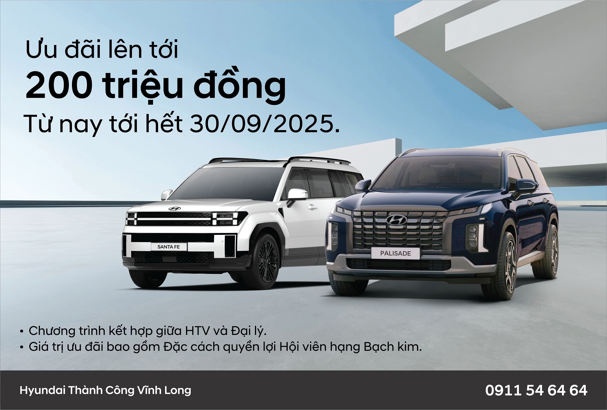 Tháng 9 này, Hyundai Vĩnh Long gửi đến Quý khách hàng chương trình ưu đãi đặc biệt – cơ hội vàng để sở hữu những mẫu xe Hyundai yêu thích với mức giá siêu hấp dẫn. Đây là chương trình ưu đãi có giá trị cao nhất trong năm, áp dụng cho nhiều dòng xe hot nhất thị trường hiện nay.