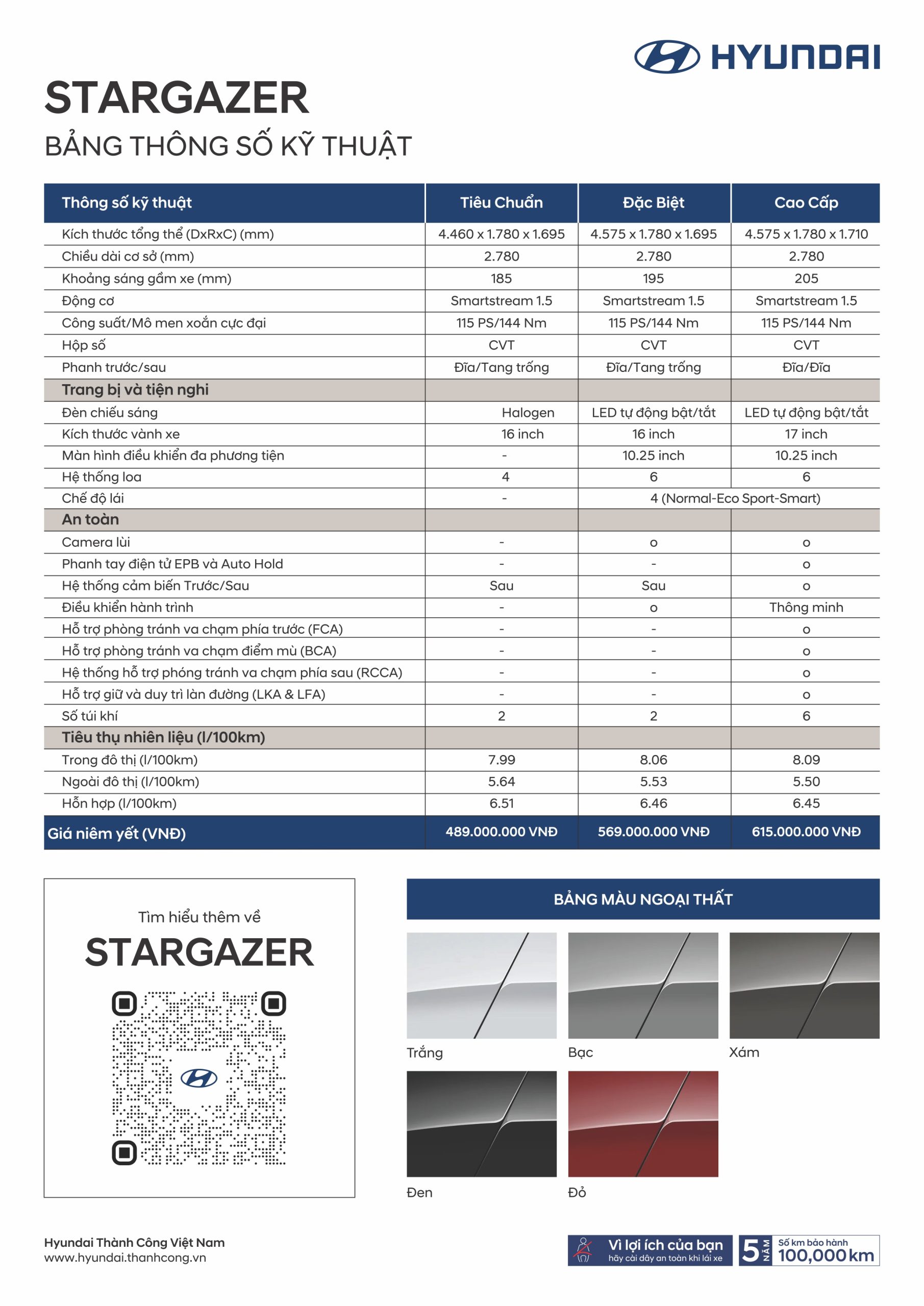 Hyundai New Stargazer được khoác lên mình tổng cộng 5 màu sắc ngoại thất:  trắng, đỏ, đen, bạc, xám.